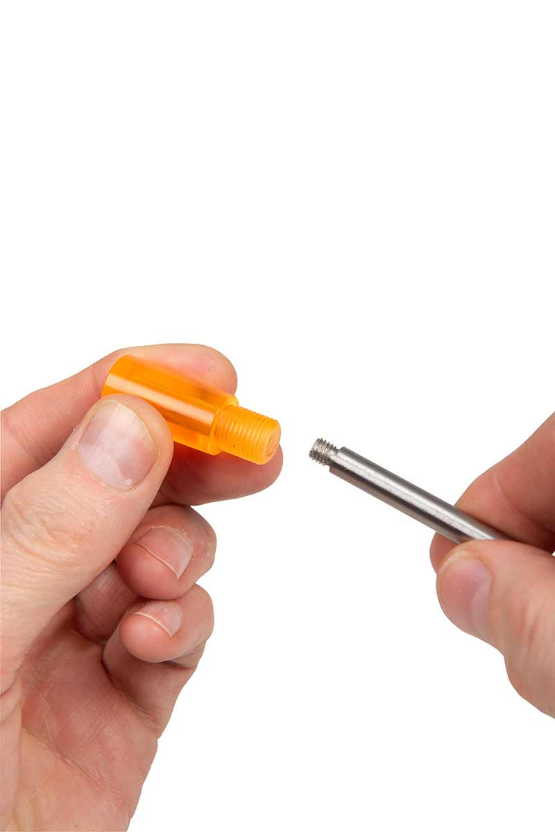 - Průsvitný oranžový vršek s drážkou pro 25mm Izotop, gumová zátka spolehlivě drží na místě.
