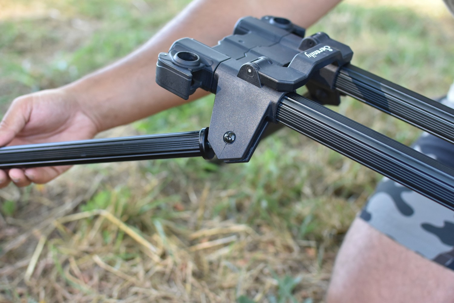 Stojan od francouzské značky Prowess Serenity 3 Rods, který je osazen dvojitou stabilní konstrukcí. Čtyři robustní sklopné nohy, které díky chytrému mechanizmu jsou posuvné a samozřejmě výškově nastavitelné. Stojan je rychle sestavitelný a dodáván s polstrovanou přenosnou taškou. - hrazdy až na tři pruty (30cm) - konstrukce z hliníkové slitiny - černý matný povrch - široké použití z lovu ze břehu - čtyři posuvné a nastavitelné nohy (46-73cm) - délka stojanu: 78 cm - hmotnost stojanu: 2,63 kg (bez obalu) - transportní rozměry s taškou: 82x27x11 cm - šíře nožiček: 2,5 cm - stojan nelze vytáhnout, ale je možné posouvání nožiček po konstrukci stojanu díky plastovým zámkům