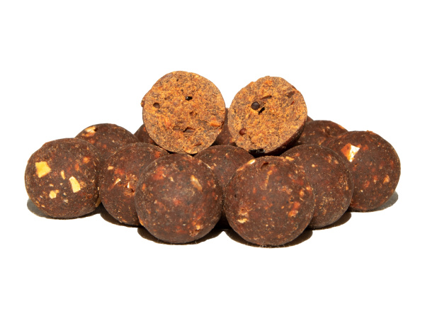 Boilies Rapid Natural Concept je vyrobeno pomocí nové výrobní technologie a zařízení, které patří mezi absolutní špičku v Evropě. Umožňuje nám sériově vyrábět boilies se stejnými parametry, strukturou a fungováním, jaké získáte při domácí ruční výrobě. Nová produkce není omezena hrubostí komponent a dovoluje i přidání opravdového ovoce, jater a dalších čerstvých surovin. Samozřejmostí je používání čerstvých vajec ve všech vyráběných řadách boilies. Konzervace a stabilizace je postavena v maximální míře na přírodních látkách a nezpůsobuje změnu aroma ani chuti kuliček. Novou generaci rozeznáte nejen podle doplňkového loga Natural Concept na sáčku, ale i podle zajímavého „naturálnějšího“ povrchu kuliček. Ty jsou nyní i těžší, hutnější a mají přesnější průměr i tvar. Přesně tak jako pečlivá domácí výroba. To znamená výrazně delší dolet a vyšší přesnost při vnadění kobrou. V neposlední řadě jistě zaznamenáte výrazně vyšší výdrž kuliček při nastražení, avšak při zachování potřebného fungování kuličky ve vodě.