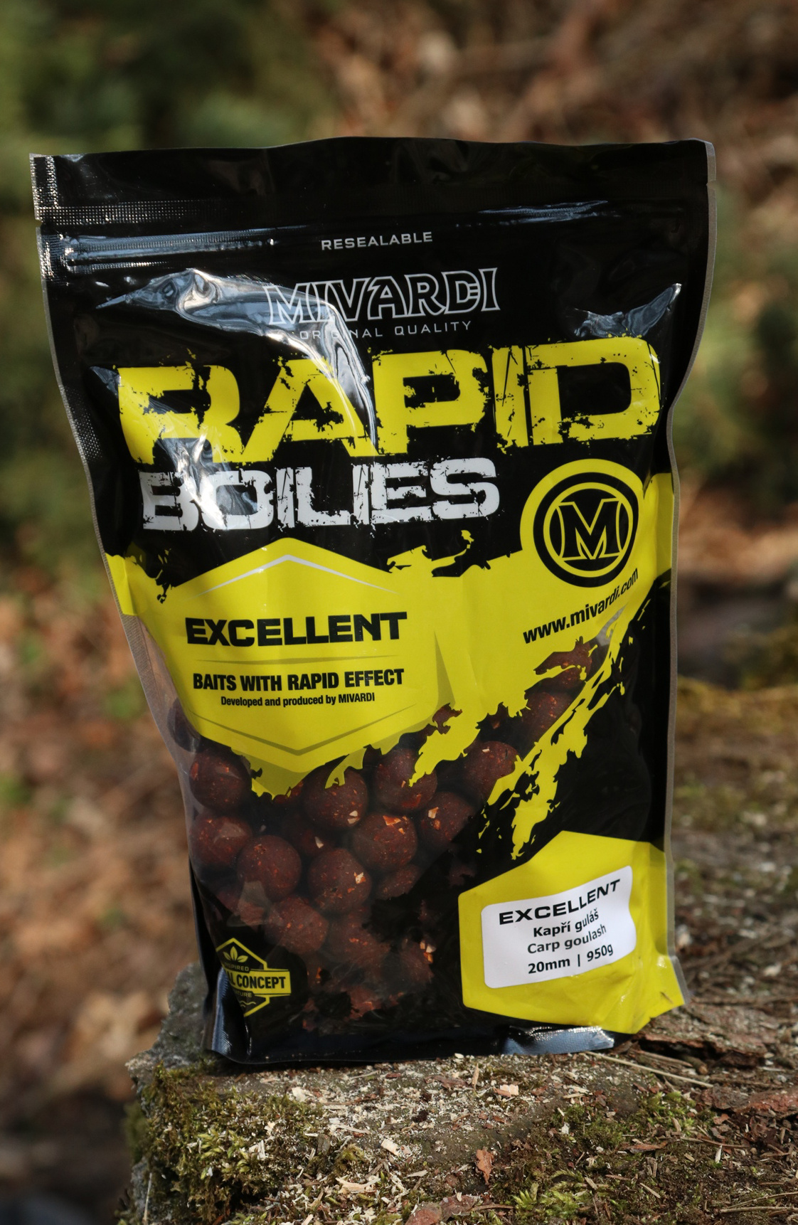 Boilies Rapid Natural Concept je vyrobeno pomocí nové výrobní technologie a zařízení, které patří mezi absolutní špičku v Evropě. Umožňuje nám sériově vyrábět boilies se stejnými parametry, strukturou a fungováním, jaké získáte při domácí ruční výrobě. Nová produkce není omezena hrubostí komponent a dovoluje i přidání opravdového ovoce, jater a dalších čerstvých surovin. Samozřejmostí je používání čerstvých vajec ve všech vyráběných řadách boilies. Konzervace a stabilizace je postavena v maximální míře na přírodních látkách a nezpůsobuje změnu aroma ani chuti kuliček. Novou generaci rozeznáte nejen podle doplňkového loga Natural Concept na sáčku, ale i podle zajímavého „naturálnějšího“ povrchu kuliček. Ty jsou nyní i těžší, hutnější a mají přesnější průměr i tvar. Přesně tak jako pečlivá domácí výroba. To znamená výrazně delší dolet a vyšší přesnost při vnadění kobrou. V neposlední řadě jistě zaznamenáte výrazně vyšší výdrž kuliček při nastražení, avšak při zachování potřebného fungování kuličky ve vodě.