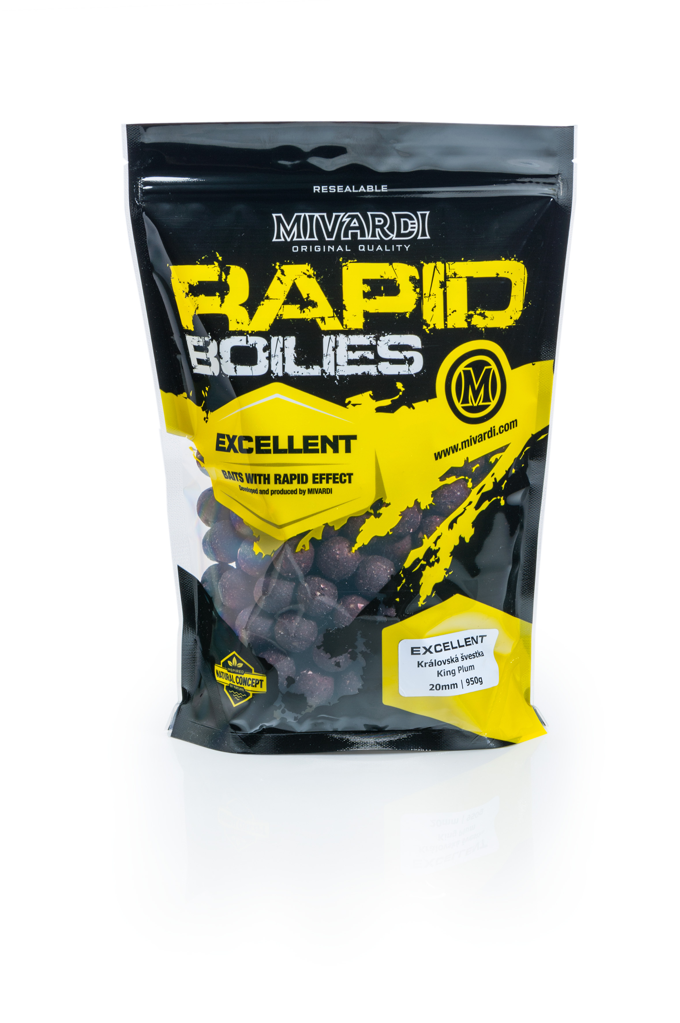 Boilies Rapid Natural Concept je vyrobeno pomocí nové výrobní technologie a zařízení, které patří mezi absolutní špičku v Evropě. Umožňuje nám sériově vyrábět boilies se stejnými parametry, strukturou a fungováním, jaké získáte při domácí ruční výrobě. Nová produkce není omezena hrubostí komponent a dovoluje i přidání opravdového ovoce, jater a dalších čerstvých surovin. Samozřejmostí je používání čerstvých vajec ve všech vyráběných řadách boilies. Konzervace a stabilizace je postavena v maximální míře na přírodních látkách a nezpůsobuje změnu aroma ani chuti kuliček. Novou generaci rozeznáte nejen podle doplňkového loga Natural Concept na sáčku, ale i podle zajímavého „naturálnějšího“ povrchu kuliček. Ty jsou nyní i těžší, hutnější a mají přesnější průměr i tvar. Přesně tak jako pečlivá domácí výroba. To znamená výrazně delší dolet a vyšší přesnost při vnadění kobrou. V neposlední řadě jistě zaznamenáte výrazně vyšší výdrž kuliček při nastražení, avšak při zachování potřebného fungování kuličky ve vodě.