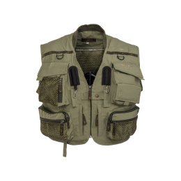Tato vesta je vyrobena z dýchatelného, rychleschnoucího a lehkého materiálu. Specifikace: - v ramení části dýchatelná pěna pro lepší komfort a zpevnění - pletený límec - 2 hlavní přední kapsy box-design - 4 dodatečných předních kapes pro ostatní potřeby - 4 přední kapsy na zip - 2 vnitřní voděodolné kapsy v oblasti prsou - 1 vnitřní kapsa spodní na zip - jedna vnitřní mesh kapsa na suchý zip - velká zadní kapsa - velká zadní kaspa na zip - v zadní části vesty D-očko a dvě postraní D-očka - Velcro snímatelný pás na suchý zip pro zip