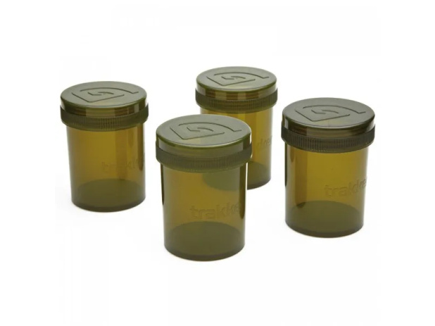 Kelímky Trakker Glug Pots 4× jsou sadou čtyř krabiček, které udrží vaše nástrahy, dipy, čaj, cukr, sůl, kávu zcela chráněné před vnějšími vlivy. Stejně tak nepropustí ani kapku dipu. Vlastnosti produktu dokonale těsné šroubovací krabičky víko opatřeno těsněním vhodné pro dipy, pop-ups, liquidy, ale také čaj, kávu nebo cukr velmi odolný, potravinářský plast zelené barvy Technické parametry Objem: 300ml
