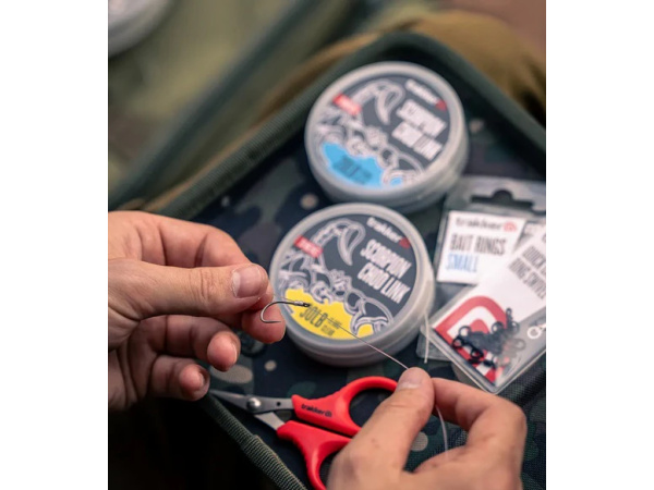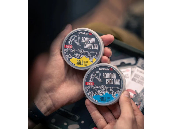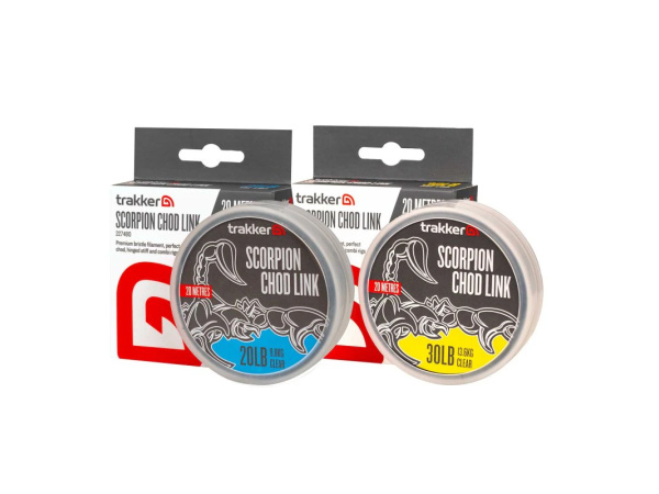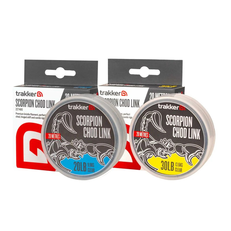 Scorpion Chod Link je perfektní tuhý materiál pro jakékoli návazce vyžadující zakřivenou, koncovou část – ideální volba pro chodové návazce nebo combi rigy. Vlascový materiál skvěle drží požadovaný tvar a snadno se s ním pracuje i bez nutnosti napařování. Nízký průměr a vysoká tuhost Scorpion Linku je ideální i pro tvorbu D-Rigů ve stylu bezuzlového vázání. Materiál se také dokonale hodí pro výrobu tuhých částí Combi rigů, nebo plovoucích návazců, pokud chytáte s helikoptérou. Scorpion Chod Link je k dispozici v 20 a 30 lb. Povrchová úprava je v matně čirém provedení s nízkou viditelností, takže je téměř neviditelná na všech typech dna. Vlastnosti produktu ideální pro chod, stiff nebo combi rigy skvěle drží požadovaný tvar dokonale se hodí pro výrobu tuhých, rovných částí Combi rigů je ideální i pro tvorbu D-Rigů ve stylu bezuzlového vázání ultra pevný a extrémně odolný proti oděru vysoká pevnost v uzlu a celková spolehlivost vyrobeno v Německu Technické parametry Nosnost: 9,8 kg (20 lb) nebo 13,6 kg (30 lb) Průměr: 0,40 mm nebo 0,45 mm (dle zvolené varianty) Barva: matně čirá s nízkou viditelností Délka: 20 m