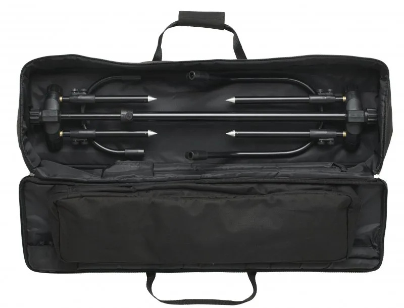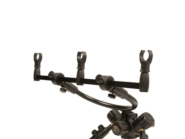 Univerzální a odolný stojan pro jakékoli použití. Vlastnosti produktu samostatně nastavitelné nohy „Dog-Leg“ upevnění hrazd eliminující kontakt stojanu se swingery a jejich možné poškození jakmile jsou pruty ve stojanu, úhel hrazd může být nastaven tak, aby pruty s hlásiči svíraly úhel 90° dodáván s hrazdami na 3 pruty a 3 rohatinkami Quicklock Butt Rest součástí jsou plně nastavitelné nohy – 2 × 10" (25,5 cm) a 2 × 12" (31 cm) unikátní systém fixace nohou, který umožňuje nastavit každou nezávisle pruty je možné mít velmi nízko, ale i velmi vysoko jen nastavením nohou Quick Release System sundávání hrazd a rychlé nastavení úhlu nohou znamenají extrémně rychlé sestavení a složení stojan je dodáván včetně polstrovaného pouzdra Technické parametry Hmotnost: 3,3 kg Délka: 118 – 168 cm Délka nohou: 25,5 – 46 cm a 30–56 cm Transportní rozměry: 75×25×12 cm Materiál: hliník