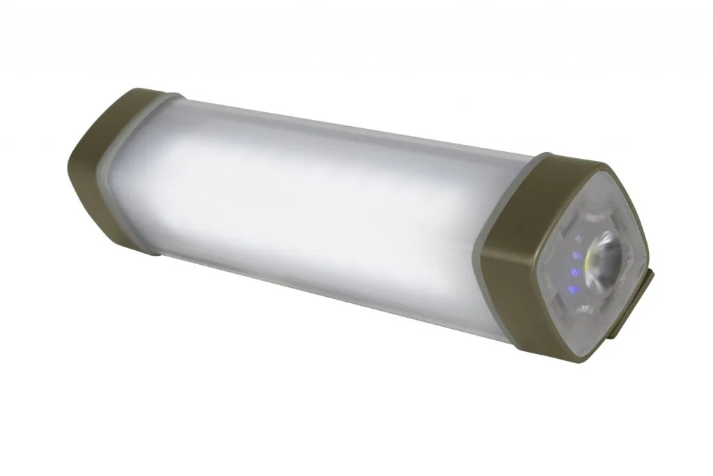 Trakker světlo Nitelife Bivvy Light 150 je multifunkční svítilna nabitá funkcemi! Může se pochlubit 6 světelnými režimy s až 80 hodinami svícení a jako bonus, může sloužit i jako „nouzová“ power banka. Jedno stisknutí tlačítka umožňuje procházet všemi 3 druhy bílého, červeného a jantarového světla s vlnovou délkou 610 nanometrů, která je méně přitažlivá pro komáry a můry. Jedním dlouhým stiskem tlačítka aktivujete svítidlo na boční straně svítilny (v tu chvíli máte v ruce klasickou „baterku“). Čtyři vestavěné LED diody neustále poskytují informace o stavu baterie a nabití. Speciální ocelová destička přesně koresponduje se dvěma silnými magnety v Bivvy Light a vy jej tak můžete připevnit k látce vašeho přístřešku. Vlastnosti produktu možnost vícebarevného osvětlení (bílá, červená, jantarová) jantarové, hmyz odpuzující zbarvení méně láká můry nebo komáry „nouzový“ napájecí zdroj s výstupem USB, pro napájení telefonů a dalších zařízení čtyři vestavěné LED diody poskytující informace o stavu baterie a nabití vodotěsné pouzdro zabraňující vnikání vlhkosti dobíjecí Li-Ion baterie se vstupním, nabíjecím portem Mikro USB vestavěné magnety a ocelová destička po práškovém lakování zajišťují připnutí k přístřešku Světelný režim Bílé, zářivkové světlo (3% jas) Bílé, zářivkové světlo (50% jas) Bílé, zářivkové světlo (100% jas) Červené světlo (100% jas) Jantarové světlo (100% jas) Boční svítilna (dlouhý stisk) Technické parametry Jas: 150 lm Barevná teplota: 6000 K Výkon: 1,5 W (max) Vstup: DC 5 V / 1 A Výstup: DC 5 V / 1,2 A Baterie: 3,7 V / 2500 mAh / 9,25 Wh Váha: 150 g Rozměry: 150 × 36 × 36 mm