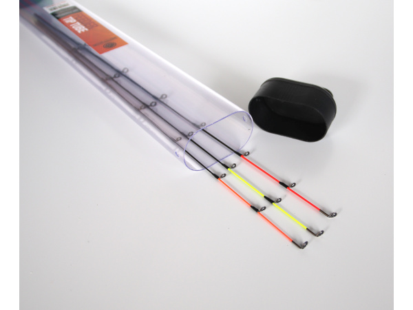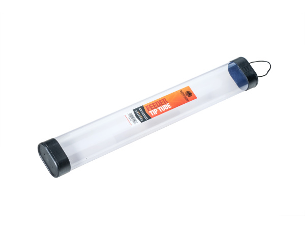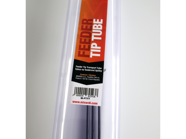 Pevný transparentní tubus pro bezpečnou přepravu feederových špiček.