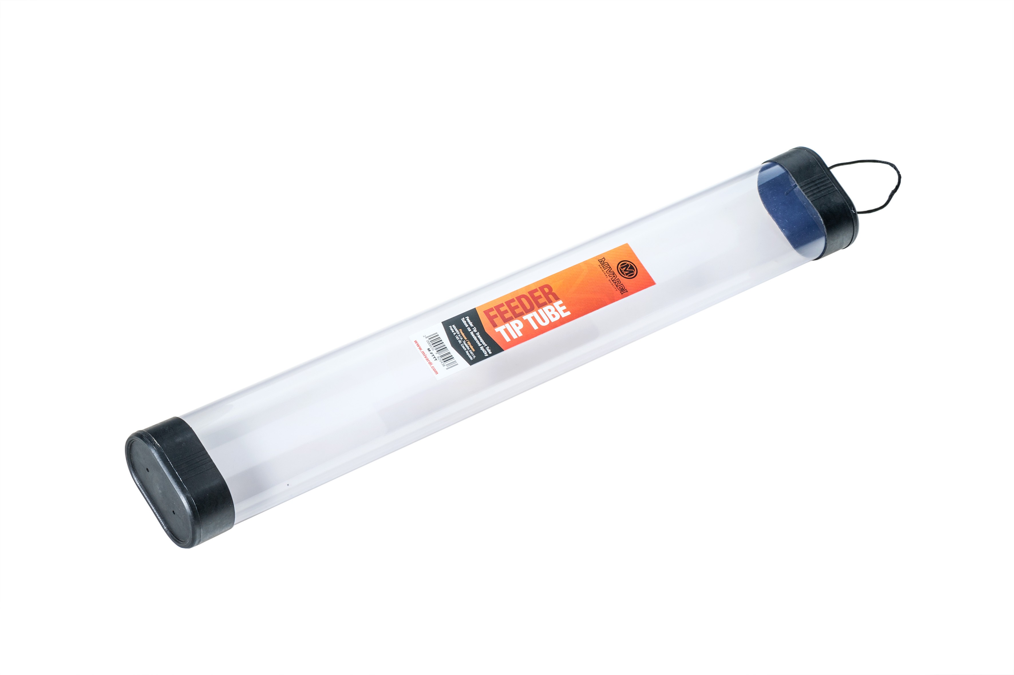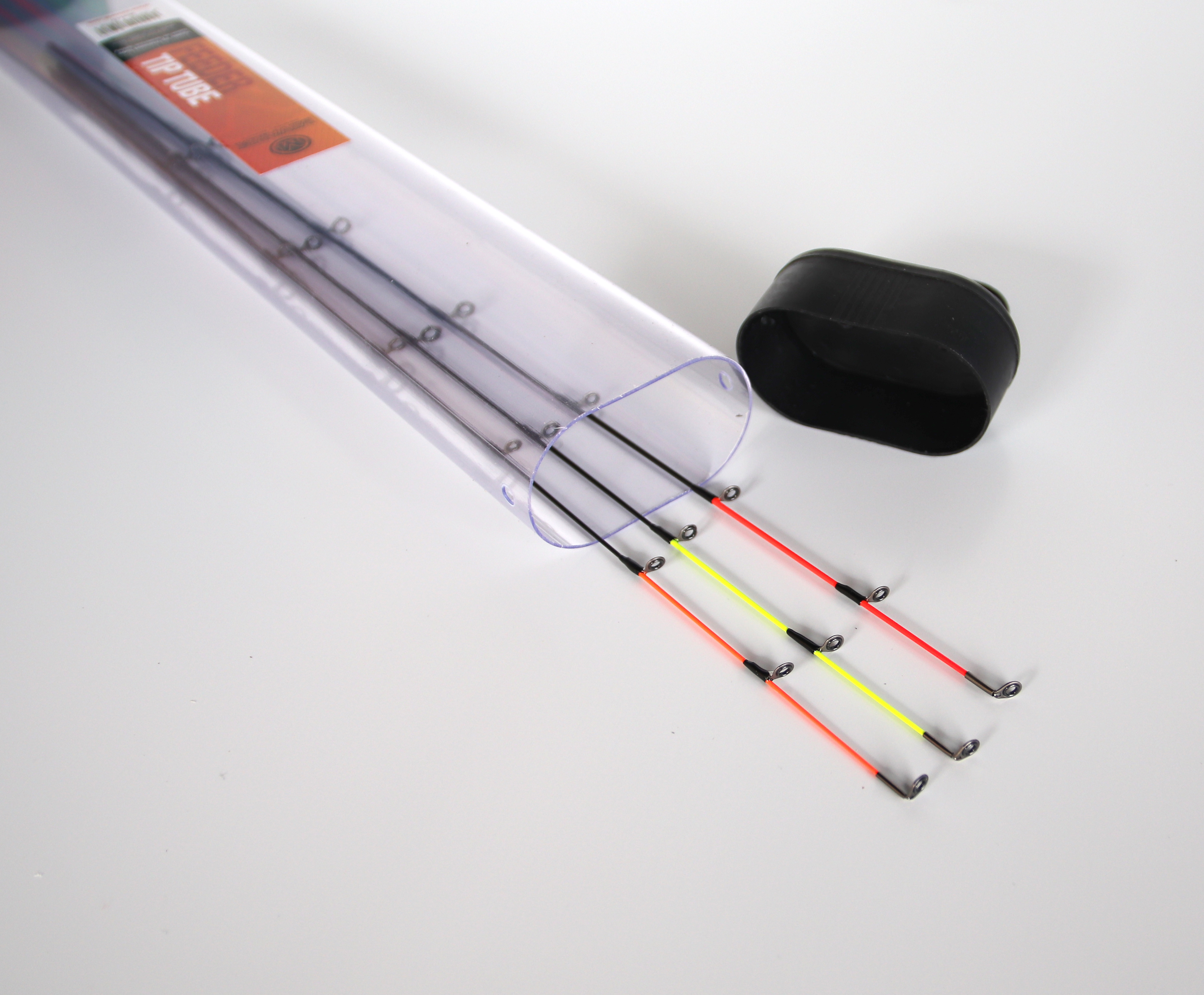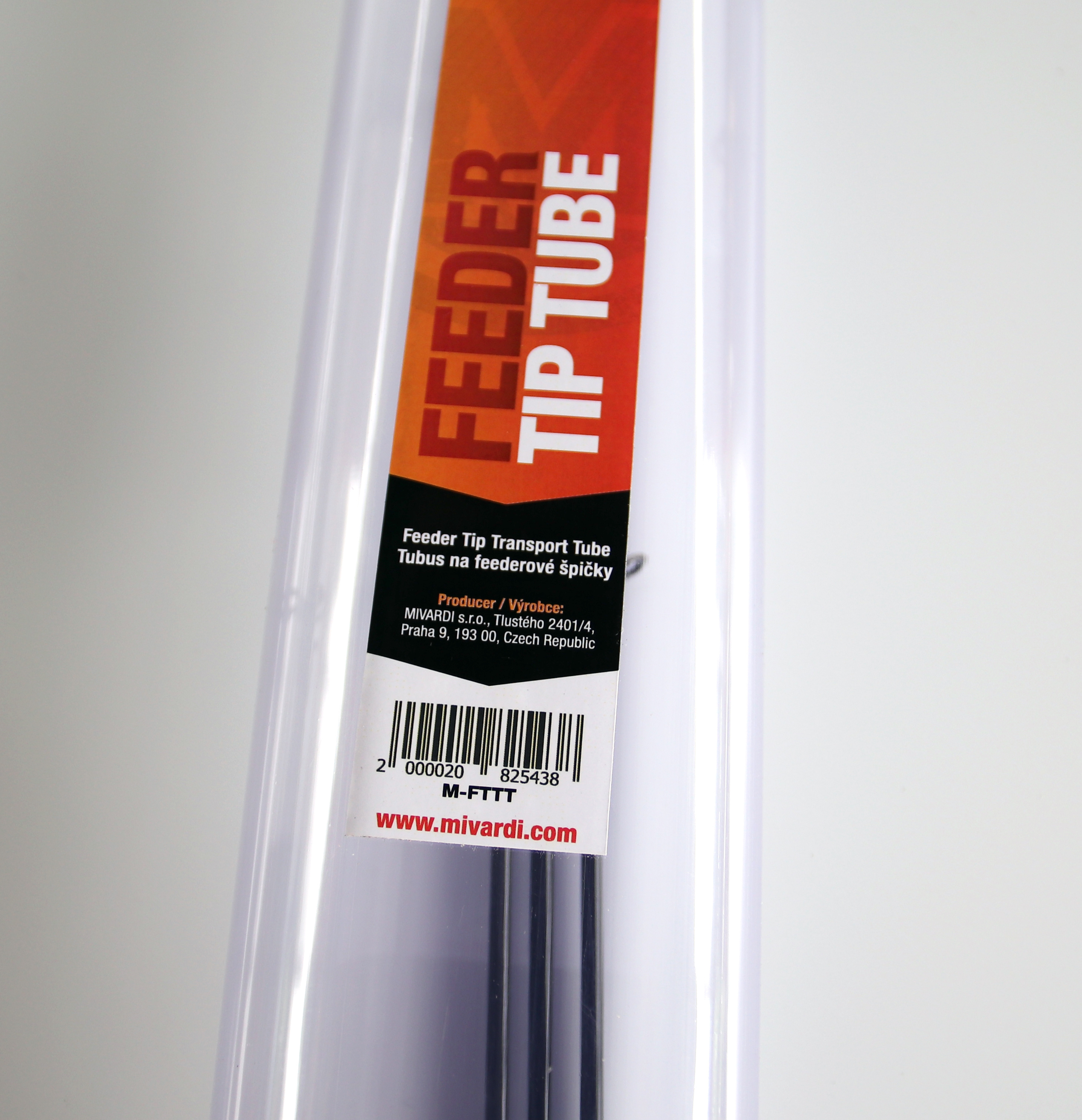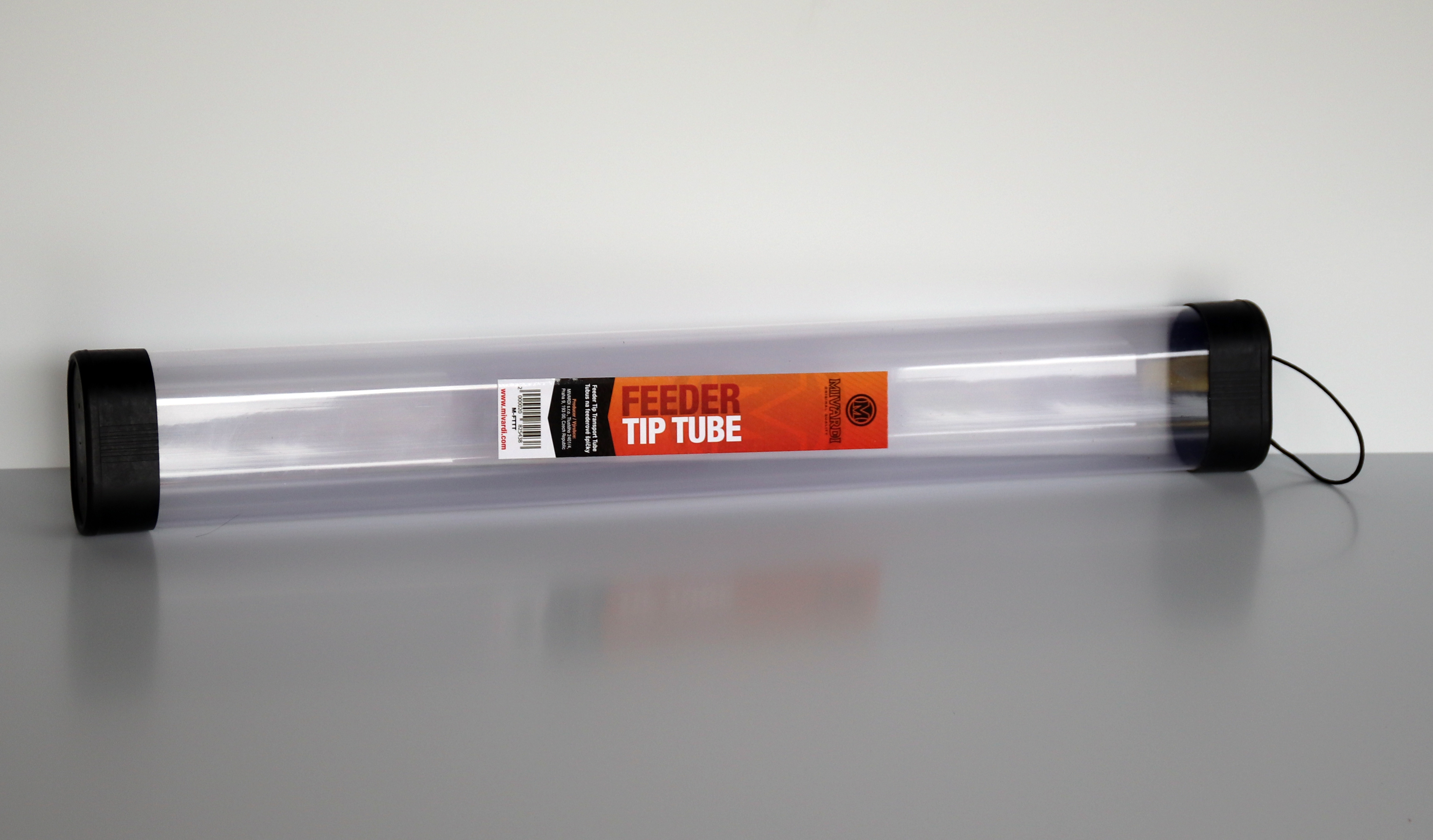 Pevný transparentní tubus pro bezpečnou přepravu feederových špiček.