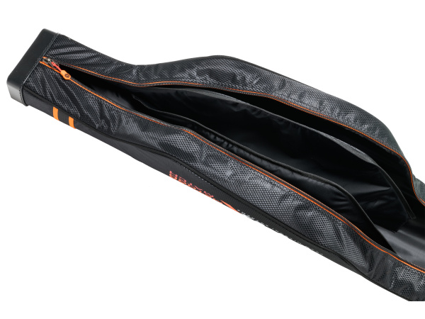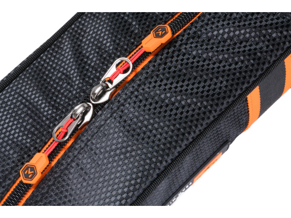 Vyztužené pouzdro na feederové pruty s množstvím doplňkových vnějších kapes, popruhů a úchytů. Vnitřní prostor je polstrovanou přepážkou rozdělen na dvě hlavní komory. Toto pouzdro je navrženo jako multifunkční obal pro přepravu dvou až čtyř prutů s maximálním důrazem na jejich ochranu. Zároveň umožňuje uložení velkého množství dalšího příslušenství. Díky tomu se snižuje celkový počet zavazadel, kterré musíte nosit s sebou. Pouzdro je osazeno polstrovaným popruhem přes rameno i držadlem pro komfortní nošení v ruce. Obaly tašky a další zavazadla série TMX jsou vyrobeny z prémiového, extrémně silného materiálu s luxusním designem ve stylu splétaného carbonu. Tento materiál je zcela nepromokavý a výborně omyvatelný. Na celé sérii TMX jsou použity zátěžové zipy nejvyšší kvality s praktickými táhly Mivardi.