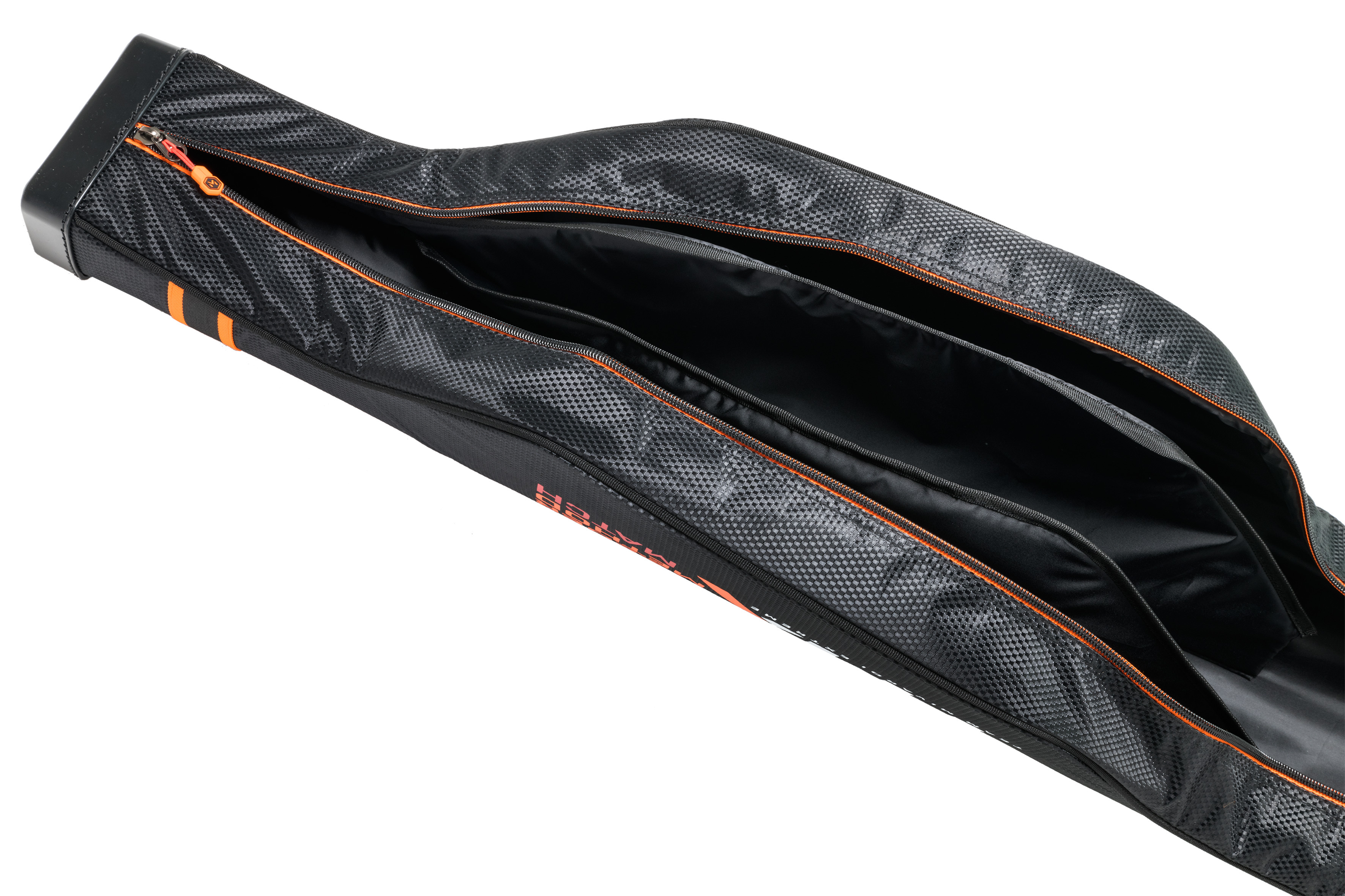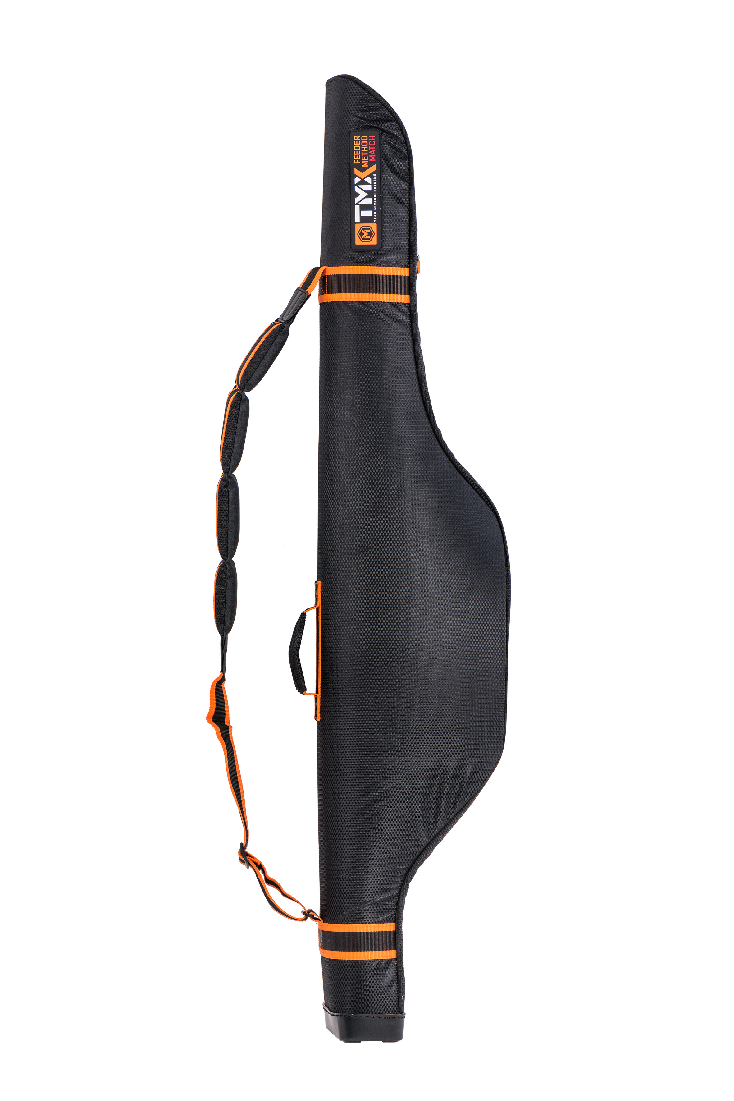 Vyztužené pouzdro na feederové pruty s množstvím doplňkových vnějších kapes, popruhů a úchytů. Vnitřní prostor je polstrovanou přepážkou rozdělen na dvě hlavní komory. Toto pouzdro je navrženo jako multifunkční obal pro přepravu dvou až čtyř prutů s maximálním důrazem na jejich ochranu. Zároveň umožňuje uložení velkého množství dalšího příslušenství. Díky tomu se snižuje celkový počet zavazadel, kterré musíte nosit s sebou. Pouzdro je osazeno polstrovaným popruhem přes rameno i držadlem pro komfortní nošení v ruce. Obaly tašky a další zavazadla série TMX jsou vyrobeny z prémiového, extrémně silného materiálu s luxusním designem ve stylu splétaného carbonu. Tento materiál je zcela nepromokavý a výborně omyvatelný. Na celé sérii TMX jsou použity zátěžové zipy nejvyšší kvality s praktickými táhly Mivardi.