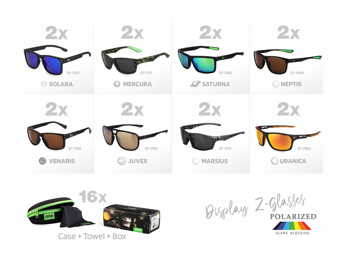 ZFISH AKČNÍ SET BRÝLÍ 16Ks+ PRODEJNÍ STOJÁNEK ZDARMA!