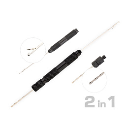 Praktická rybářská jehla a vrták 2v1, určená pro snadnou přípravu a nastražení nástrah, jako jsou boilies, pelety nebo partikl. Sada obsahuje jehlu s háčkem pro provlečení vlasového přívěsu skrz nástrahu a malý vrtáček pro předvrtání tvrdších nástrah. Díky tomu lze nástrahu připravit rychle, přesně a bez jejího poškození.Ergonomická kovová rukojeť s protiskluzovou úpravou zajišťuje pevný úchop i při práci mokrýma rukama. Hlavní výhody: ideální pro nastražení boilies, pelet nebo tygřího ořechu pevný vrtáček pro tvrdé nástrahy kovová konstrukce s dlouhou životností protiskluzová rukojeť pro pohodlné použití kompaktní velikost