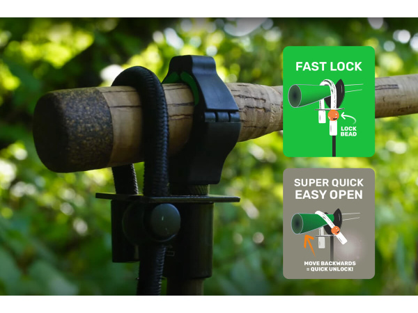 ZFISH Rod Lock Grip je velice šikovná a praktická pojistka, která dokonale ochrání Vaše pruty proti nechtěnému vypadnutí ze stojanu nebo vidličky. Pojistka se jednoduše namontuje pod jakoukoli běžnou rohatinku a snadno se přizpůsobí průměru vašich prutů díky nastavitelné délce fixační gumy. Bezpečné zajištění prutu obstará posuvný kovový korálek. Quick Release System - Otevření pojistky v případě záběru je naprosto jednoduché - stačí jeden rychlý pohyb prutem dozadu. Unikátní oboustranný design zámku, otevírání si přizpůsobíte dle potřeby Konstrukce pojistky umožňuje úplné odpojení fixace bez nutnosti demontovat celou pojistku. Nastavitelná délka fixační gumy pro různé průměry prutů