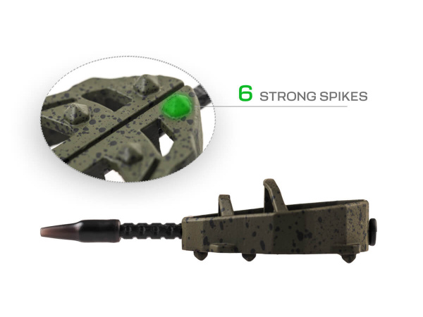 Method Feeder Set 2 krmítka + formička jsou výhodné sady našich revolučních method feeder krmítek Spider včetně silikonové formičky. Krmítko Spider představuje novou generaci method feeder krmítek, která spojuje precizní zpracování, promyšlený design a maximální funkčnost. Na jejich vývoji se podílel tým zkušených specialistů značky ZFISH, díky čemuž vzniklo krmítko, které splňuje i ta nejvyšší očekávání moderního rybáře. Tvar Spidera zaručuje dokonalé vyvážení při nahazování a jisté dosednutí ke dnu vždy tou správnou stranou. Nově navržený nosný rám zajišťuje optimální uvolňování krmné směsi a zároveň chrání nástrahu během náhozu. Součástí konstrukce je speciální ploška pro přesné umístění nástrahy s háčkem, která zajistí, že vaše nástraha bude vždy v ideální pozici. Krmítka Spider umožňují rychlou výměnu zátěže díky vyjímatelné trubičce a otvoru na zadní straně. Stačí vysunout trubičku, uvolnit vlasec a vyměnit zátěž za jinou – bez nutnosti převazování celé sestavy. Krmítka jsou vyrobena z bezolovnatého materiálu v matně zeleném provedení s černými tečkami, které dokonale splyne s dnem a minimalizuje plašení ryb. Inovativní method feeder krmítko nové generace Nový design Spider pro ještě lepší rozložení krmiva Speciální ploška pro přesné umístění nástrahy Snadná a rychlá výměna zátěže díky vyjímatelné trubičce Ideální vyvážení a jisté dosednutí ke dnu Bez olova, ekologické provedení Pogumované matně zelené provedení s černými tečkami - skvělé maskování Dostupné ve 2 velikostech a gramážích 30-120 g Spider formička je precizně zpracovaná silikonová formička určená speciálně pro novou generaci method feeder krmítek ZFISH Spider. Umožňuje dokonalé vytvarování směsi a přesné umístění nástrahy do krmítka – vždy se stejným, perfektním výsledkem.Formička je vyrobena z kvalitního a pružného silikonu, který zaručuje snadné uvolnění krmné směsi z naplněného krmítka. Díky ergonomickému tvaru se s ní velmi pohodlně pracuje a naplnění krmítka zvládne i začátečník během několika sekund.Formička Spider Mould je laděna do typické ZFISH zelené barvy, takže se snadno odliší od běžných oranžových forem na trhu. Dokonale pasuje ke všem krmítkům ZFISH Method Feeder Spider Formička je krásně měkká pro snadnou manipulaci s krmítkem Zajišťuje rovnoměrné naplnění a snadné uvolnění směsi Ergonomický tvar pro pohodlné použití Stylová ZFISH zelená barva - odlišná od běžných formiček